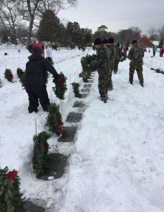 place the wreaths on veterans graves after a brief memorial service. ![]()