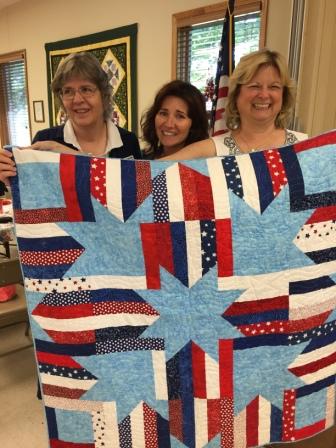 Jaime Greene, Lucrecia Ferriby, Joanne Kohn, Quilt made by Candace Soehren (left). and LaCinda Anderson of Ottawa Chapter.