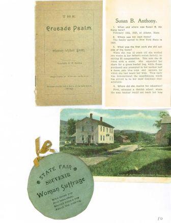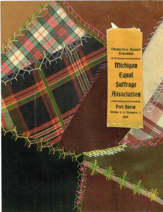 Susan B. Anthony Connection... In 2010, the Susan B. Anthony Museum in Rochester, NY agreed to receive from Jean Waddell a Suffragette collection that had belonged to her great-grandmother. As a member of Ottawa Chapter Daughters of the American Revolution, Port Huron MI, Jean donated the collection on behalf of Ottawa Chapter MI NSDAR. The collection included three “crazy” quilts now located in the Susan B. Anthony Museum in Rochester, NY. The quilts were made from Susan’s old dresses by her good friend, Louise Bingham Reynolds, and donated by Louise’s great-granddaughter, Jean Cleland Waddell.